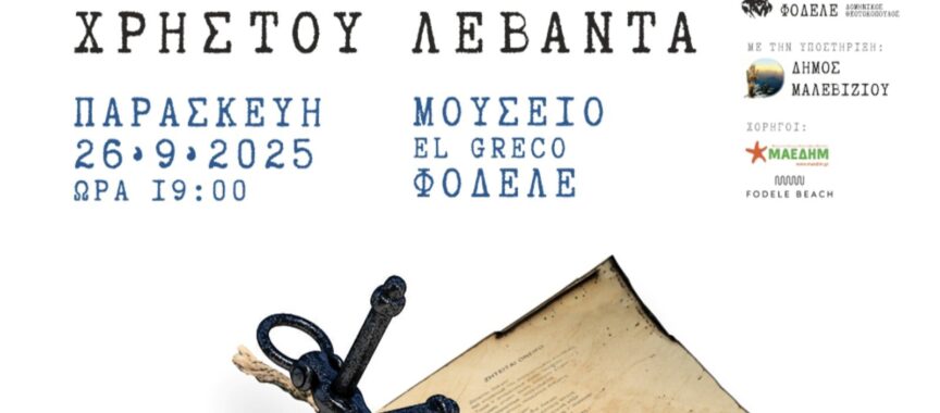 Η εκδήλωση θα πραγματοποιηθεί την Παρασκευή 26 Σεπτεμβρίου, στις 7:00 μ.μ., στον εξωτερικό χώρο του Μουσείου Δομήνικος Θεοτοκόπουλος στο Φόδελε.