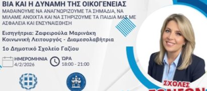 Στο 1ο Δημοτικό Σχολείο Γαζίου αύριο Τετάρτη η εκδήλωση για τη διαδικτυακή βία στο πλαίσιο των Σχολών Γονέων